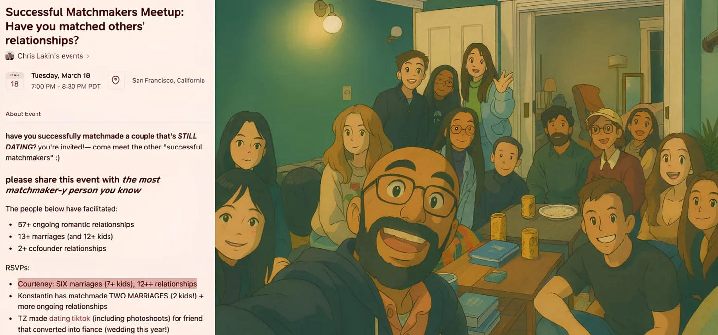 At this point, I’m reminded of a matchmakers meetup I ran several months ago:
