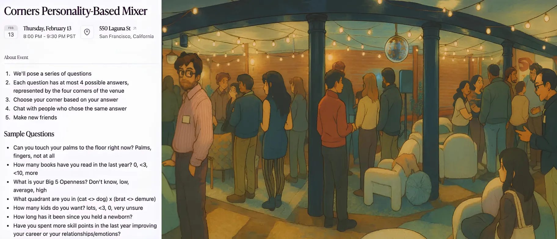 I also doubled down by experimenting with other matchmaking methods, including running public events and inviting friends to parties outside their social graph. But these too were less effective than I hoped.