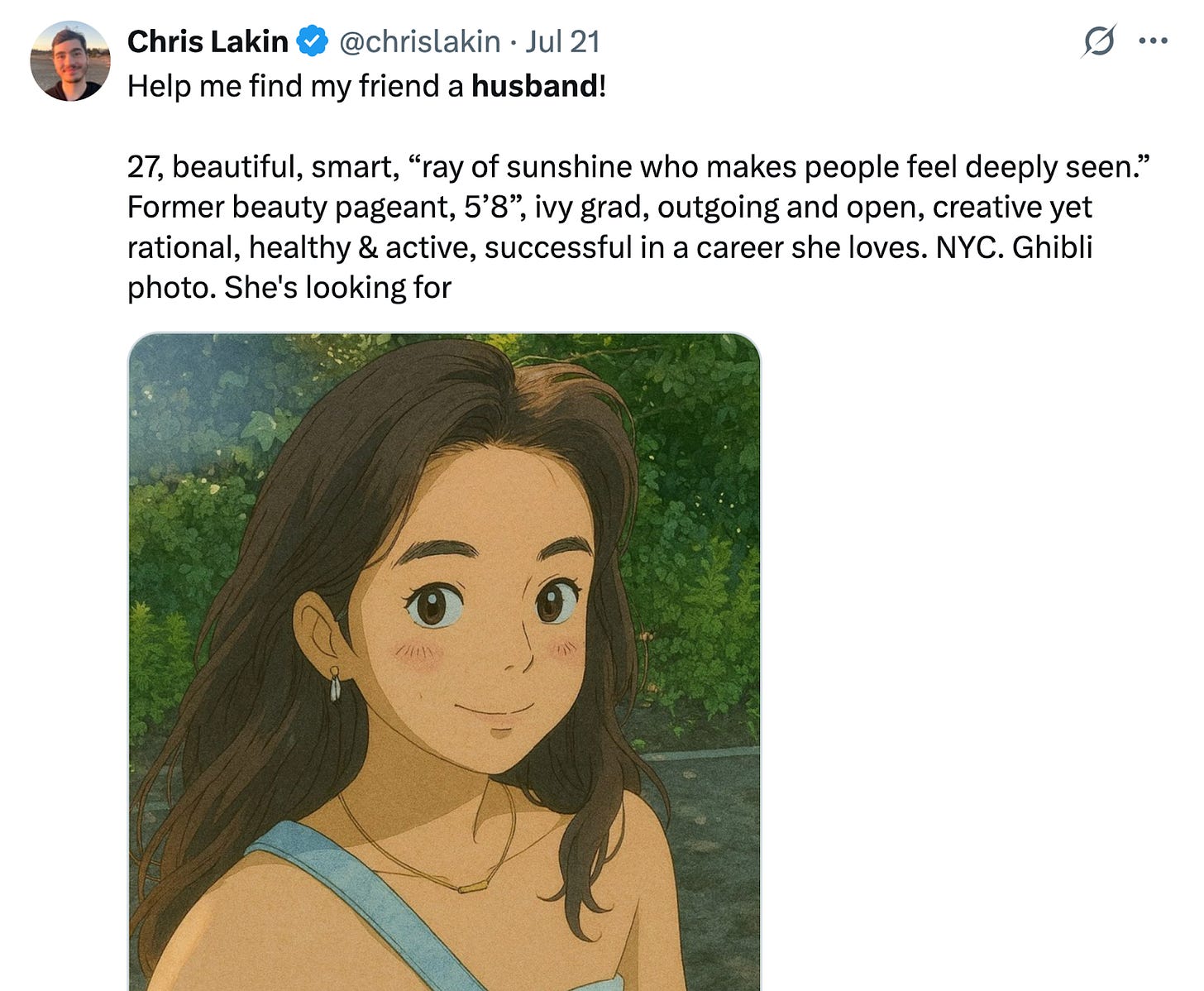 I thought, “Maybe she just needs more matches?”, so I posted a twitter classified: